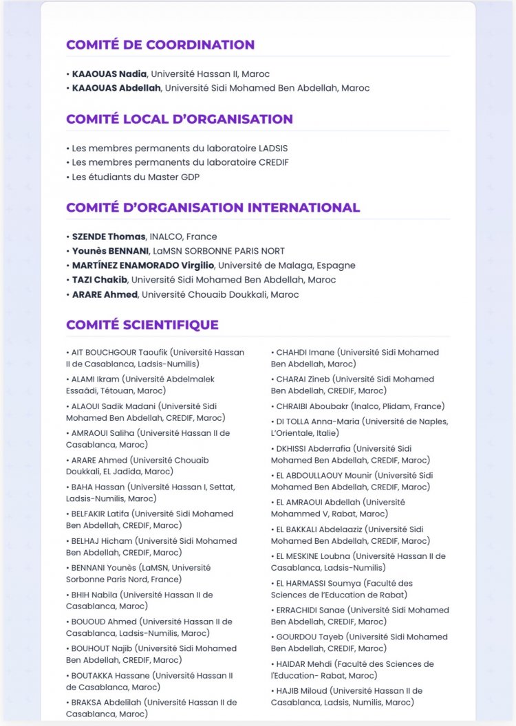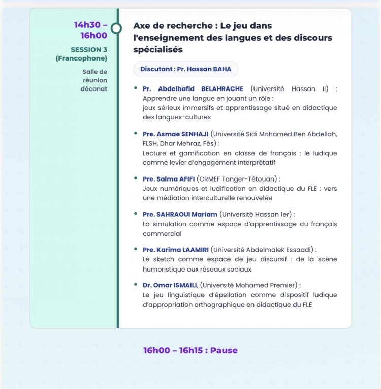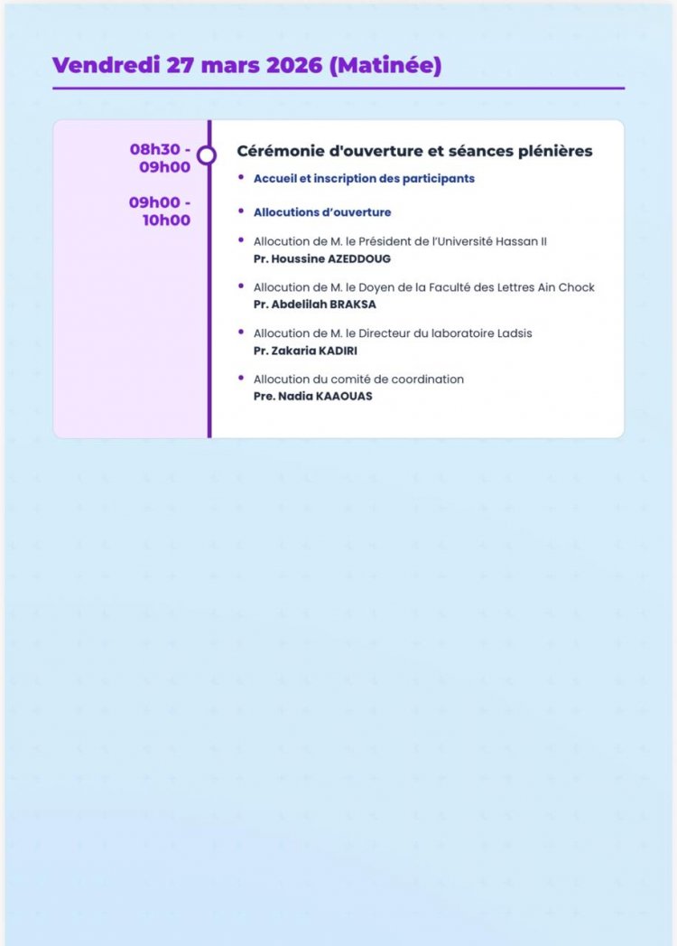 La présence attendue d’intervenants issus d’universités marocaines, européennes et internationales, ainsi que l’implication de chercheurs confirmés et de doctorants, conférera à ce rendez-vous une dimension intergénérationnelle et interculturelle. Là encore, le programme du colloque met en évidence cette féconde diversité des profils et des affiliations, gage d’un dialogue scientifique riche et pluriel .