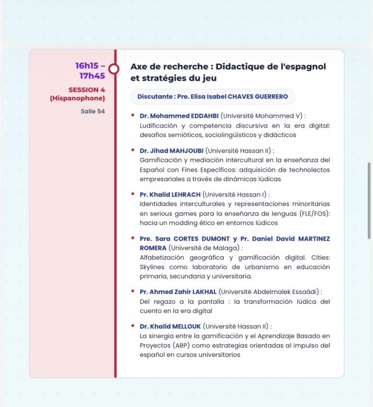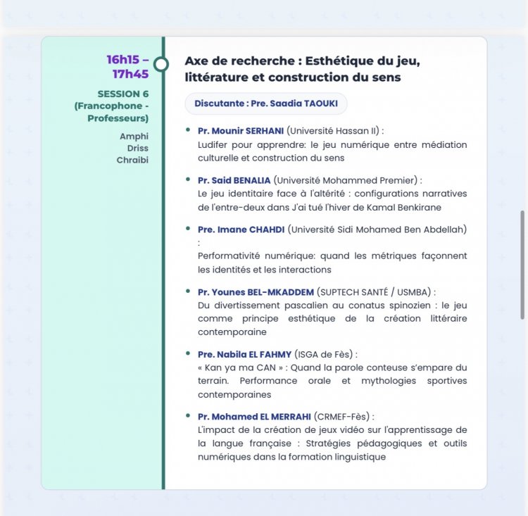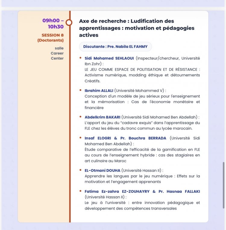 Le choix du thème, « Jeu et ludification à l’ère du numérique : enjeux culturels, sociolinguistiques et didactiques », s’inscrit dans une actualité scientifique particulièrement vive. À mesure que les technologies numériques investissent les espaces éducatifs et sociaux, le jeu tend à s’imposer comme un levier stratégique pour repenser les modalités d’apprentissage, d’engagement des apprenants et de transmission des savoirs. Le programme du congrès, tel que détaillé dans les documents officiels, confirme cette orientation : dès la séance plénière qui inaugure cet événement, les interventions devraient revisiter et interroger les politiques éducatives, les stratégies institutionnelles et les défis contemporains liés à l’intégration du jeu dans les systèmes de formation.