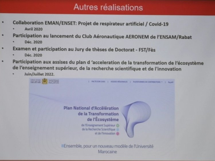 "C'est une très belle occasion pour nous", a déclaré le professeur MOUDRIK, de rendre à notre cher pays, Le Maroc, un peu de ce qu'il nous a donné durant des années. La plupart de nous, ajoute le président d'EMAN AEROSPACE, ont commencé leurs formations ici au Maroc et nous sommes très contents d'y revenir pour pouvoir participer et donner un peu à notre tour."