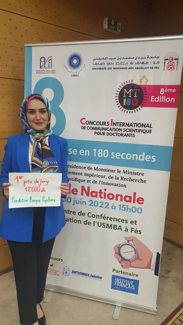 Jihane KENFAOUI, doctorante à la FST de l'USMBA de Fès, remporte la finale nationale de la 8ème édition de: " Ma thèse en 180 secondes".