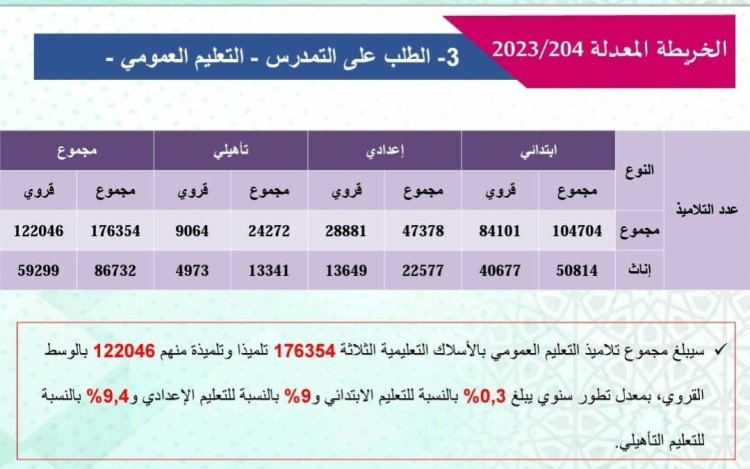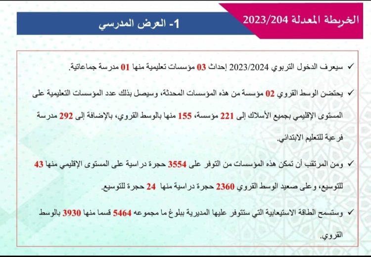 During the current school year, the El Jadida region will witness the intiation of several physical projects and pedagogical programs aligned with the goals and objectives outlined in the roadmap, encompassing three key areas : students, teachers, and schools. Below are the key highlights of the 2023/2024 academic year in the Directorate of El Jadida :