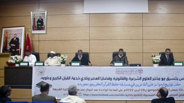 يوم مشهود عاشته كلية الشريعة بفاس صباح الخميس 26 رمضان 1443ه الموافق ل 28 أبريل 2022م، حيث تم تنظيم حفل قرآني لتوزيع الجوائز على الفائزين في مسابقة حفظ القرآن الكريم وتجويده، والذي فاز فيه إحدى عشر طالبا خمسة منهم في حفظ القرآن الكريم كاملا مع تجويده وثلاثة منهم في حفظ 30 حزبا وتجويدها وثلاثة في حفظ عشرة أحزاب، كما منحت جوائز للجنة التحكيم، وهذه الجوائز عبارة عن كتب ولوحات إلكترونية وشواهد تقديرية.