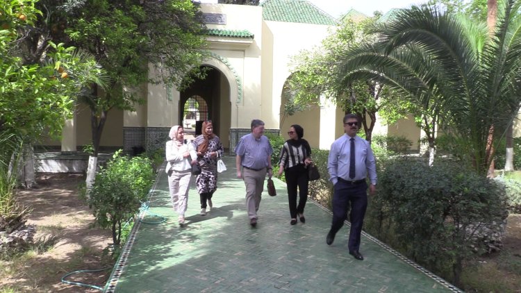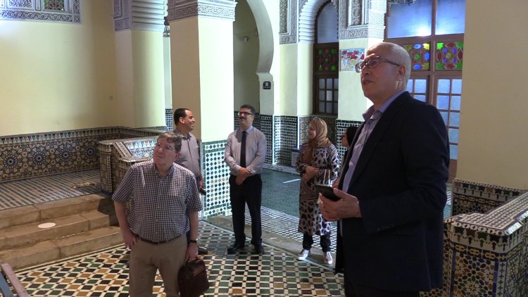بعد ذلك توجه الوفد إلى زيارة المركب الثقافي والفني محمد بن يوسف، حيث قدمت لهم كافة الشروحات عن هاته المعلمة التاريخية.