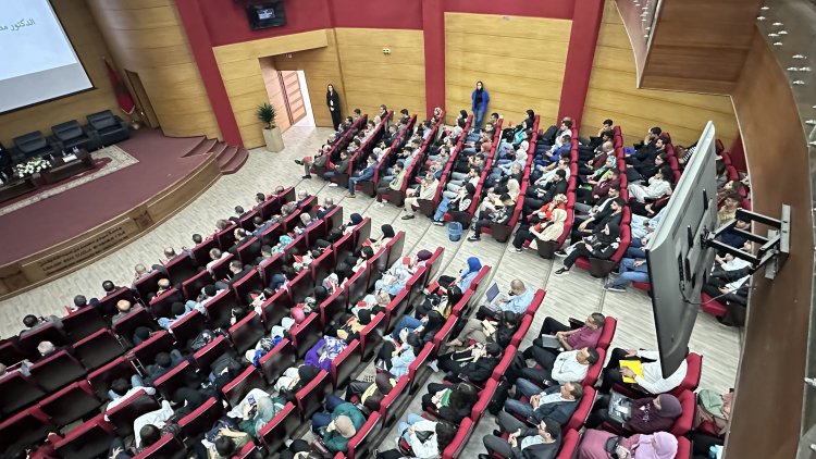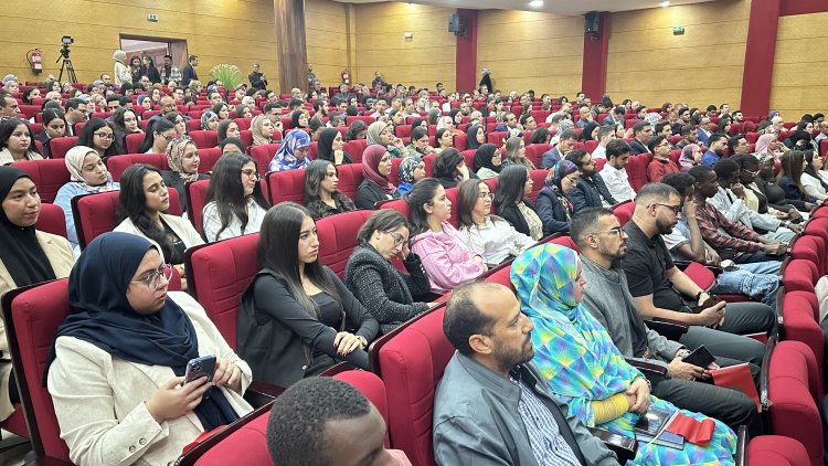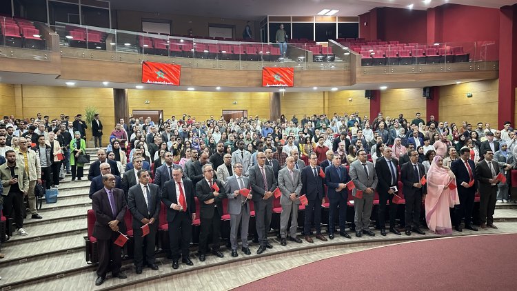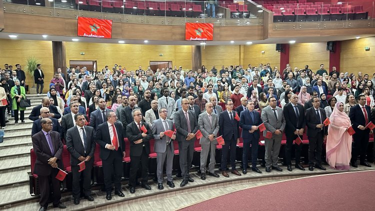 داخل القاعة، المشهد كان أبلغ من كل الكلمات: المئات من الطلبة واقفون، يلوحون بالعلم الوطني، يرددون بصوت واحد أغنية «العيون عينيا والساقية الحمرانية والواد وادي يا سيدي»، في لحظة امتزج فيها الانتماء بالمعرفة، والبحث العلمي بروح الوطنية، وسط تصفيقات مدوية أعادت إلى الأذهان وهج المسيرة الخضراء الأولى.