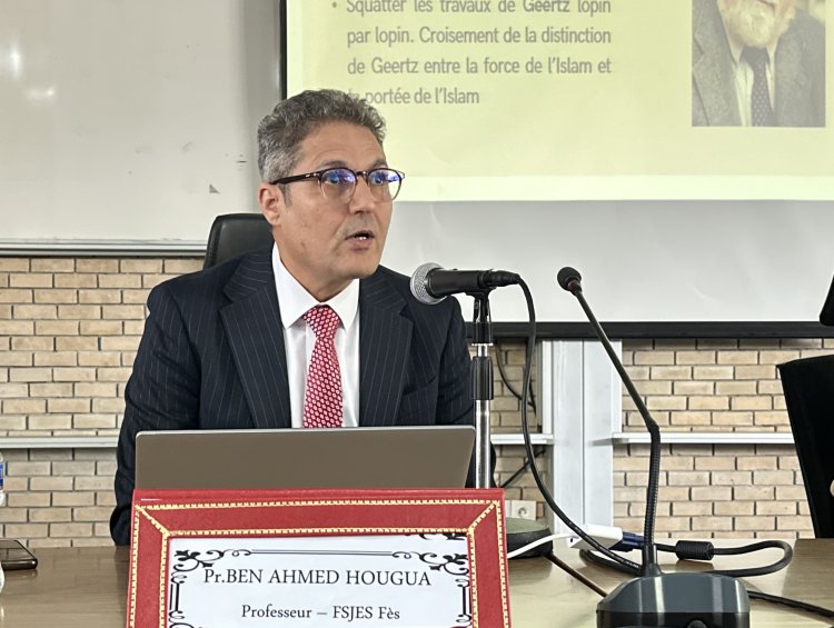 La première grande conférence, Arts et désastres : quelle liaison ?, a été donnée par le Pr. Abderrahmane TENKOUL, dans une atmosphère d’attention profonde. Sous l’excellente modération du Pr. Adil LOUCHKLI, il a exploré la manière dont l’art permet de comprendre, d’amortir ou d’interpréter les crises contemporaines. Dans sa déclaration au micro d’universitatv — média qui accompagne fidèlement la FSJES de Fès depuis janvier 2021 — il a insisté sur la nécessité pour les étudiants de développer des outils d’analyse et des compétences heuristiques capables de mettre à distance « les grands récits idéologiques aujourd’hui dépassés » et de naviguer dans un monde secoué par les transitions écologiques, numériques et politiques. « On ne peut pas créer de futur sans multidisciplinarité », a-t-il martelé, rappelant par ailleurs le rôle historique du Maroc comme terre de diffusion du savoir.