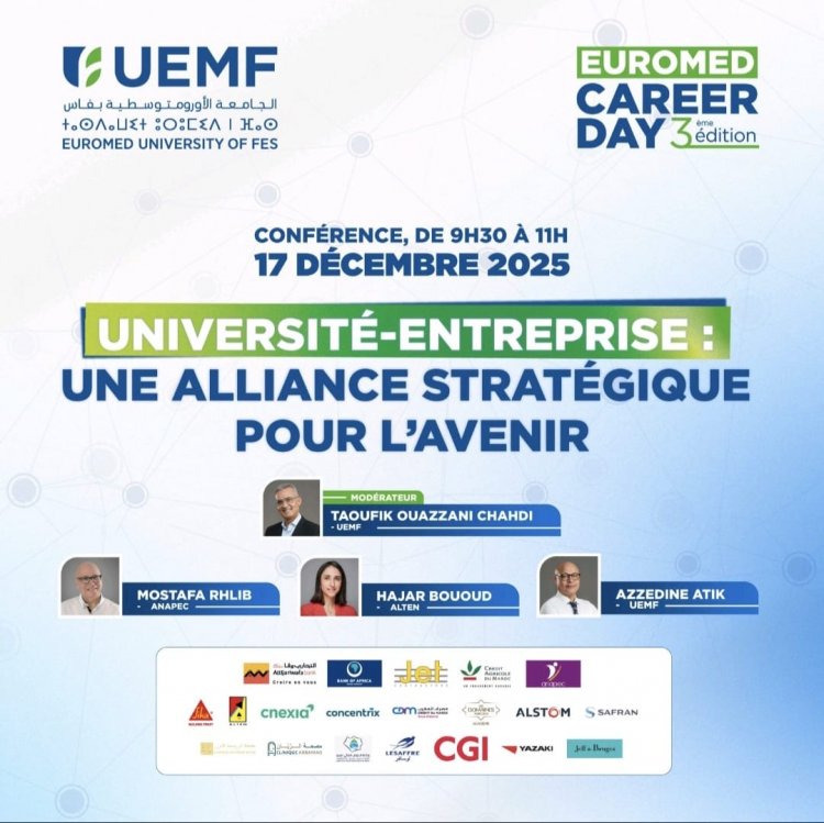 À l’Université Euromed de Fès, la rencontre entre le monde académique et celui de l’entreprise ne relève plus du slogan, mais d’une pratique structurée et assumée. La troisième édition du Career Day, organisée mercredi 17 décembre 2025 à l’Agora de l’Éco-Campus, a illustré avec force cette ambition : faire de l’employabilité un pilier central du parcours universitaire.